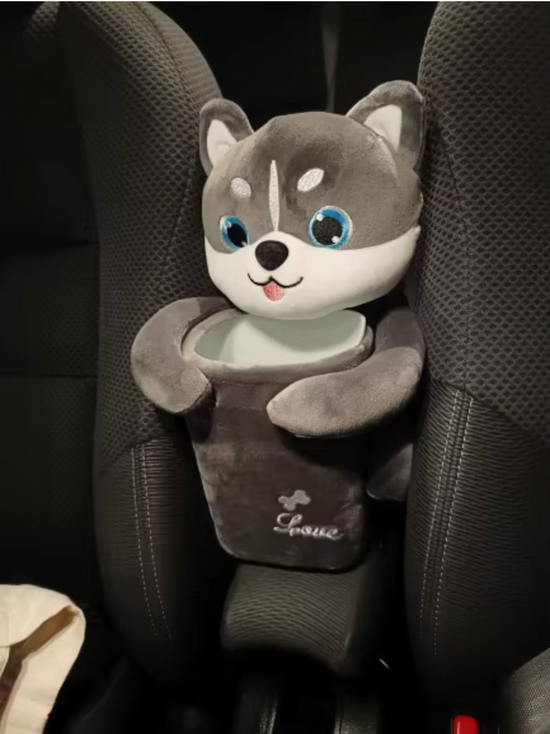 Bedårande 2-i-1 förvaringslåda i plysch för bilens armstöd